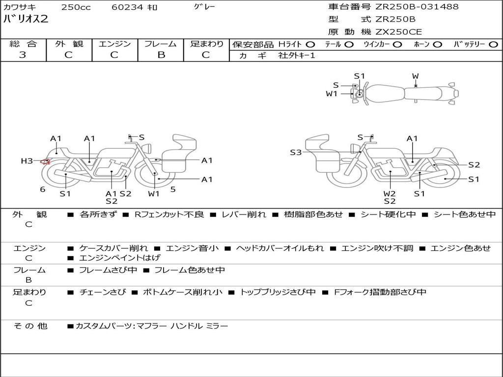 | Номер рамы / VIN | ZR250B-031488 |