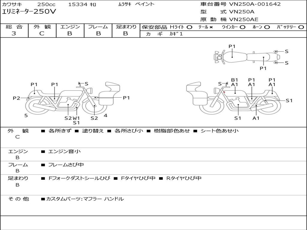 | Номер рамы / VIN | VN250A-001642 |