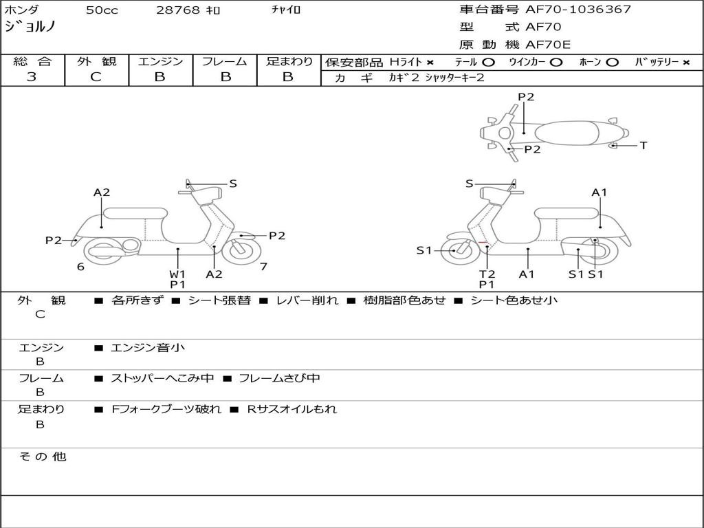 | Номер рамы / VIN | AF70-1036367 |