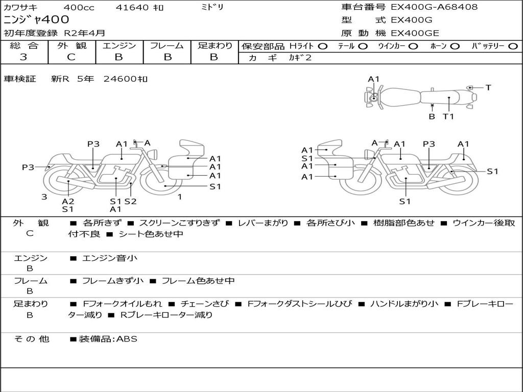 | Номер рамы / VIN | EX400G-A68408 |