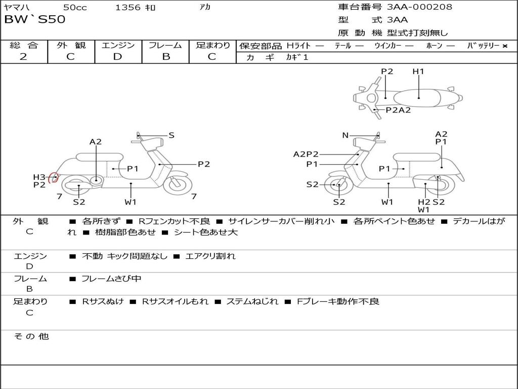 | Номер рамы / VIN | 3AA-000208 |