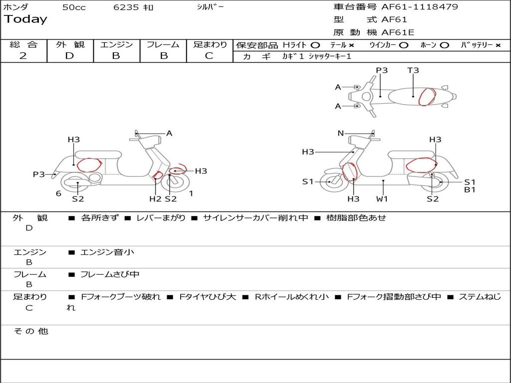 | Номер рамы / VIN | AF61-1118479 |