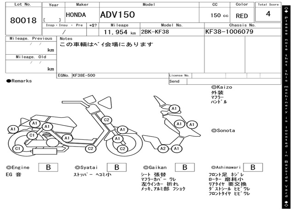 | Номер рамы / VIN | KF38-1006079 |
