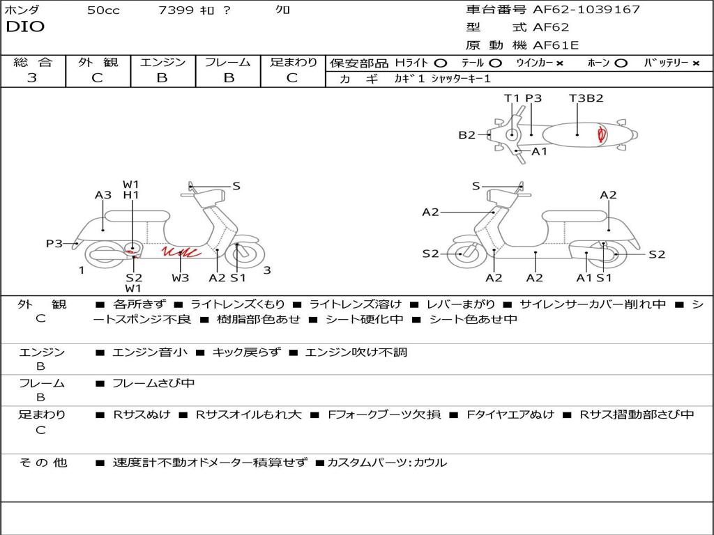 | Номер рамы / VIN | AF62-1039167 |