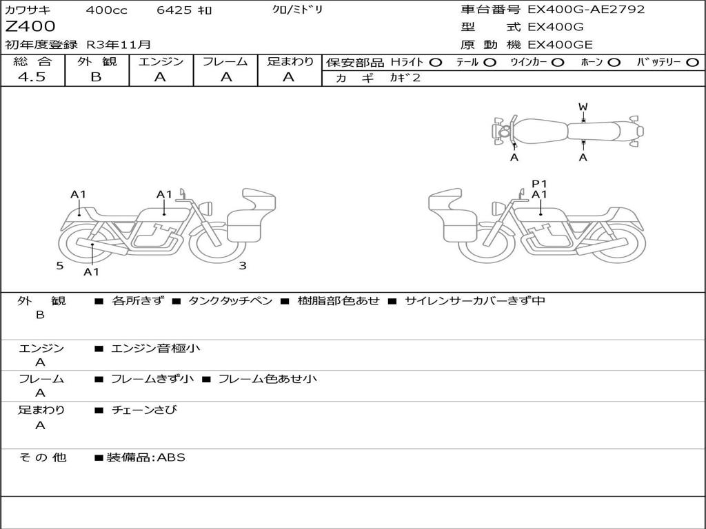 | Номер рамы / VIN | EX400G-AE2792 |