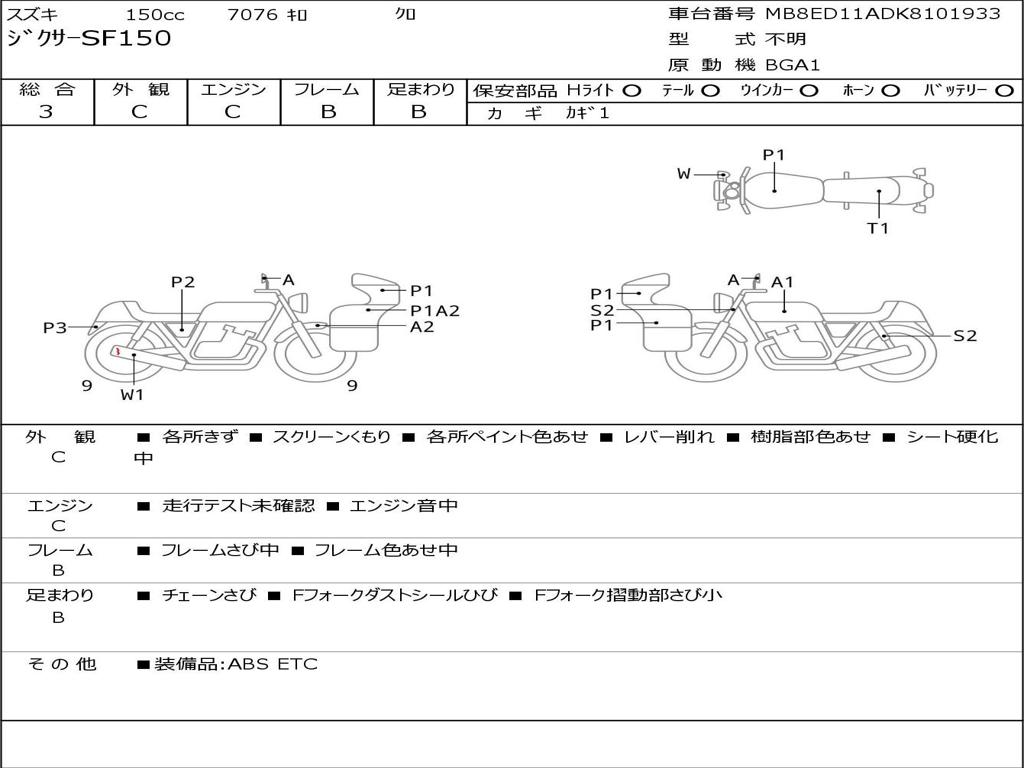 | Номер рамы / VIN | MB8ED11ADK8101933 |