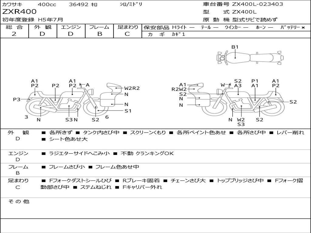 | Номер рамы / VIN | ZX400L-023403 |