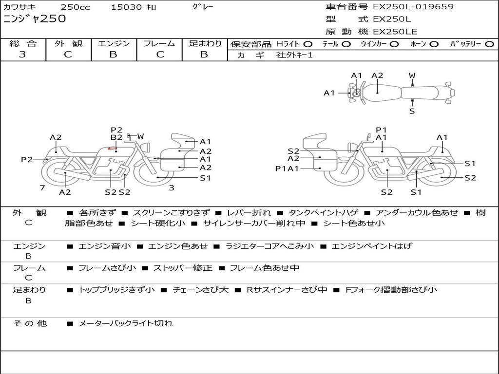 | Номер рамы / VIN | EX250L-019659 |