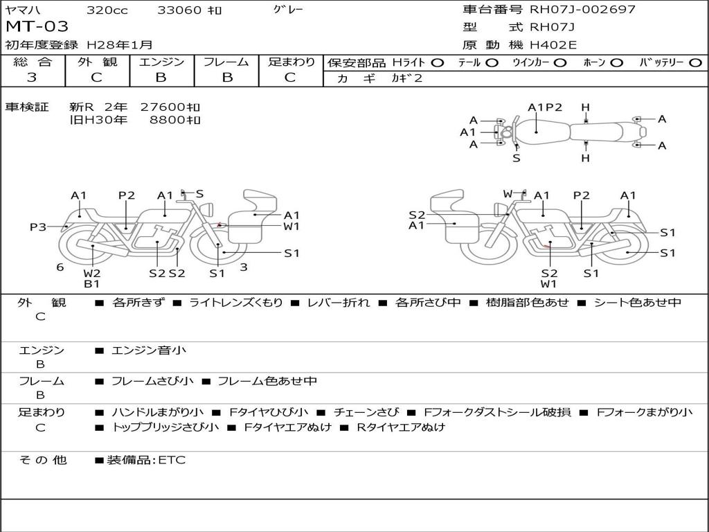 | Номер рамы / VIN | RH07J-002697 |