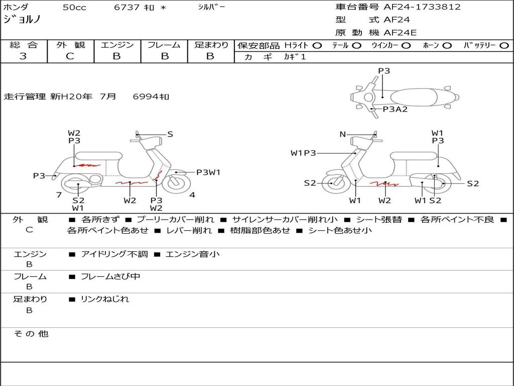 | Номер рамы / VIN | AF24-1733812 |