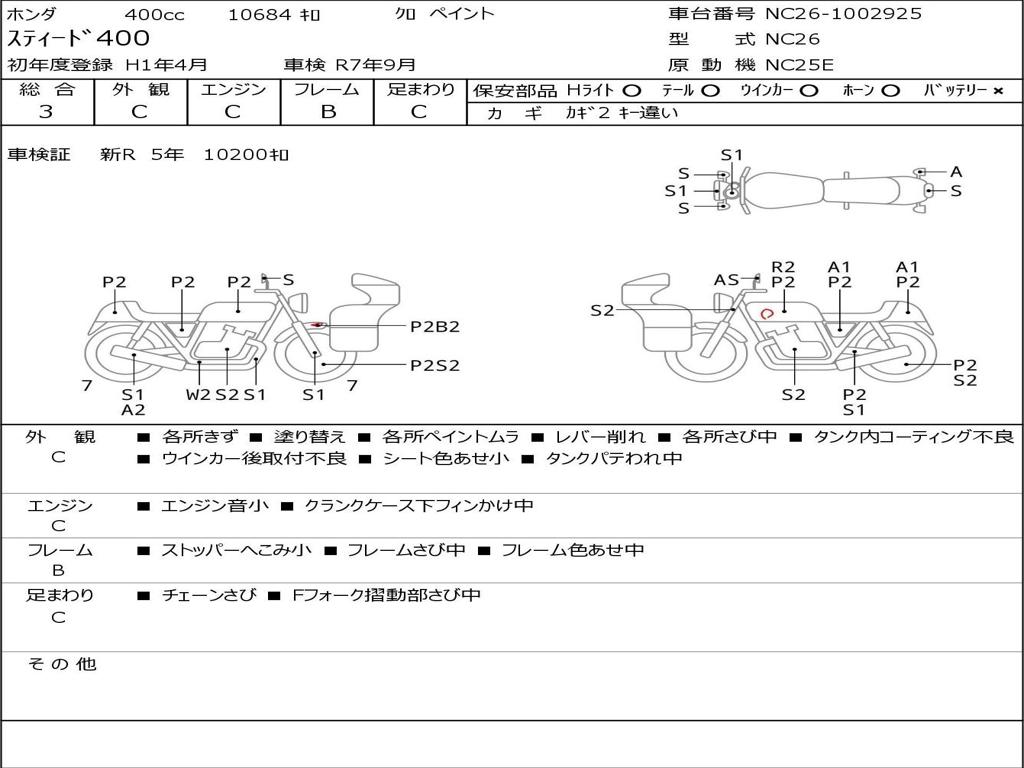 | Номер рамы / VIN | NC26-1002925 |