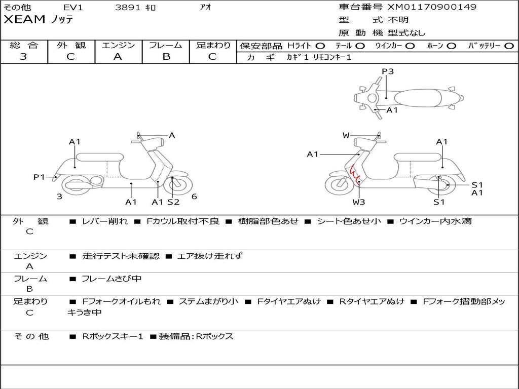 | Номер рамы / VIN | XM01170900149 |