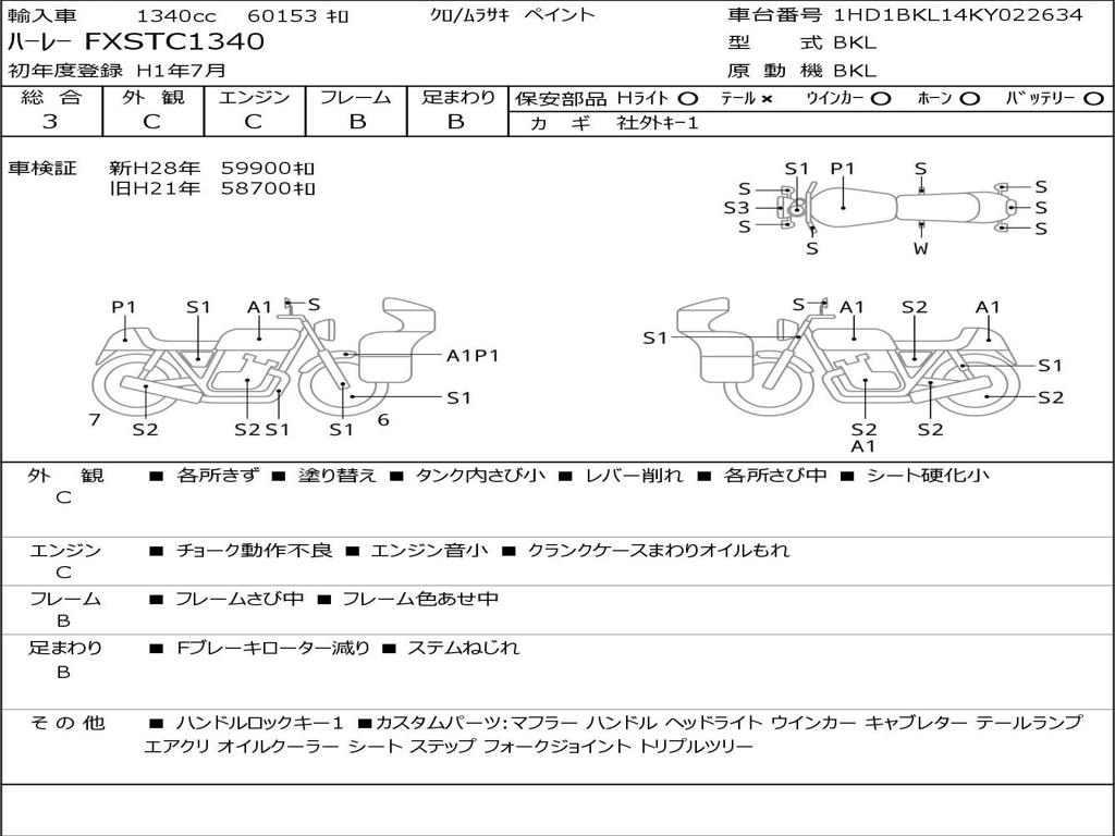 | Номер рамы / VIN | 1HD1BKL14KY022634 |
