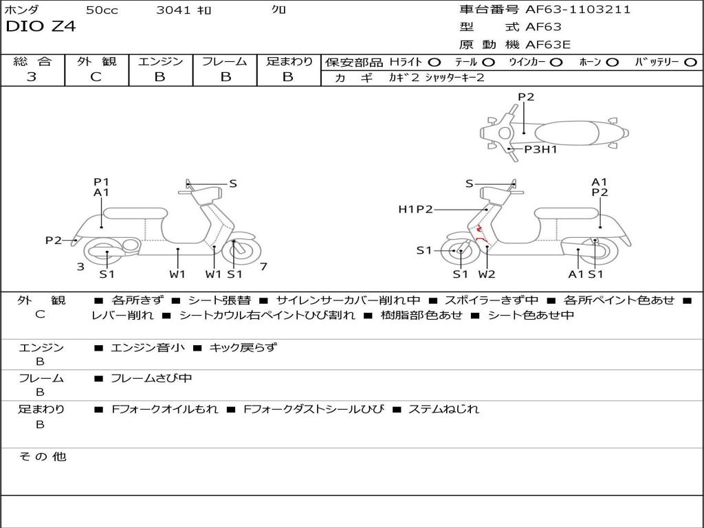 | Номер рамы / VIN | AF63-1103211 |