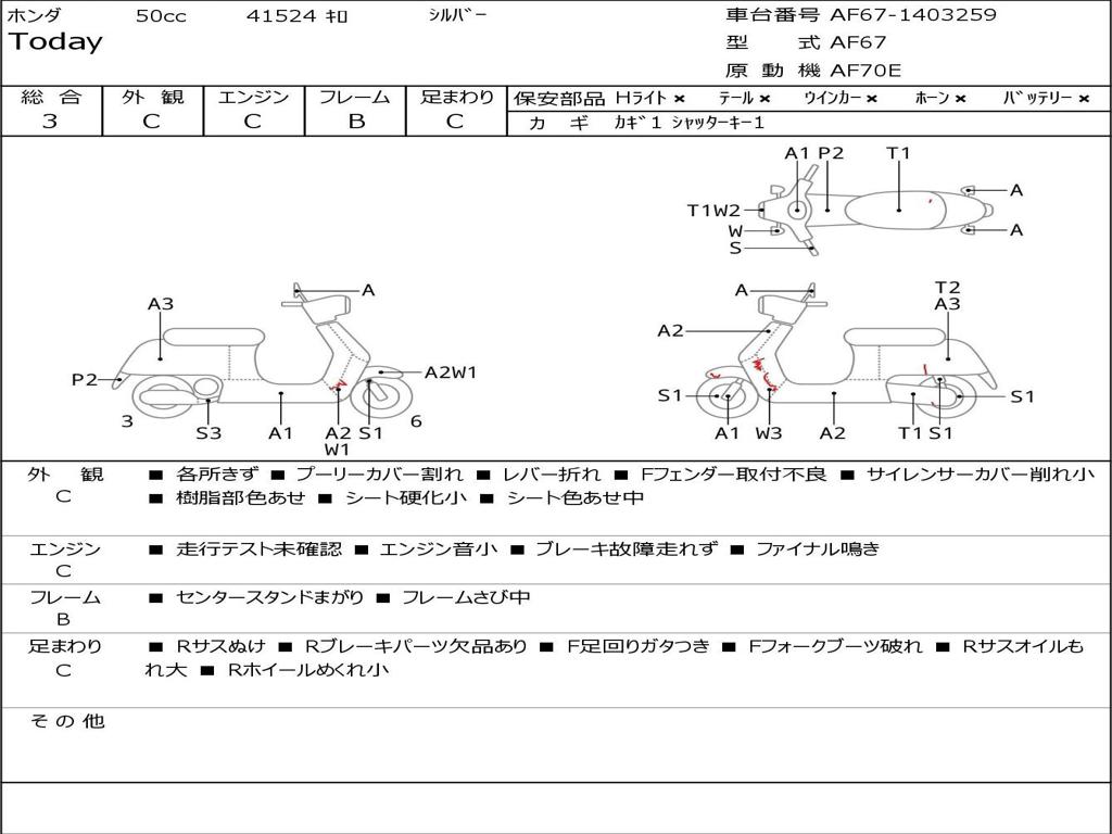 | Номер рамы / VIN | AF67-1403259 |