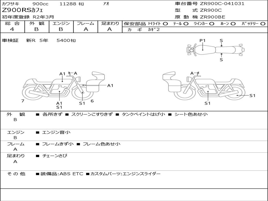 | Номер рамы / VIN | ZR900C-041031 |