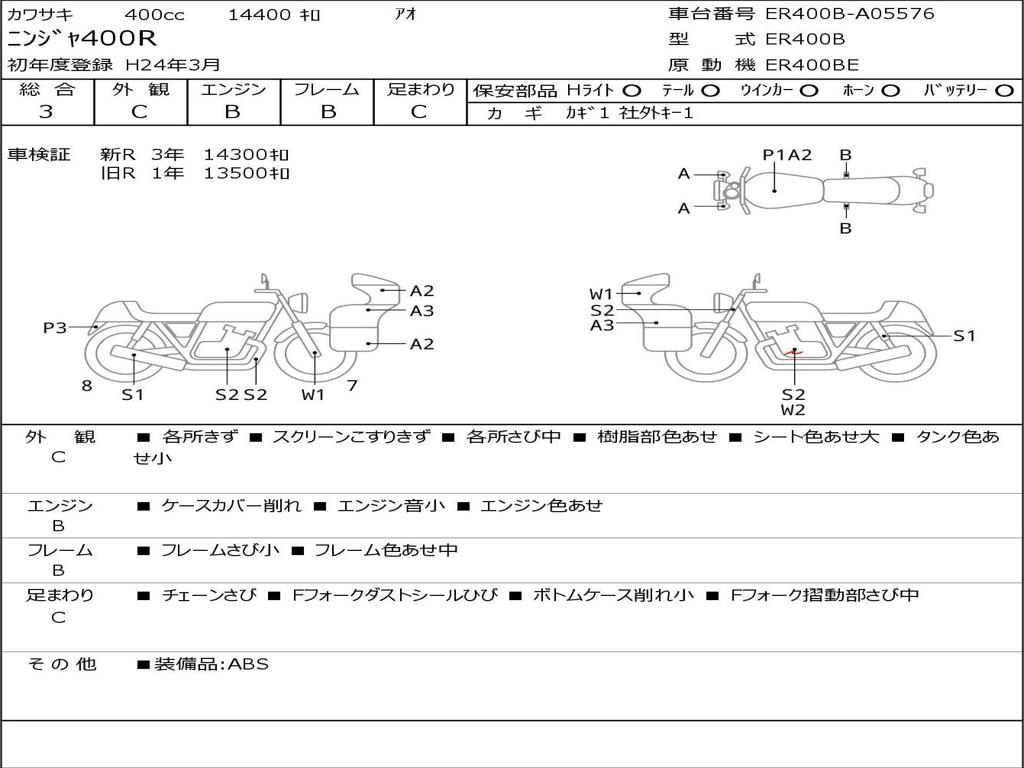 | Номер рамы / VIN | ER400B-A05576 |