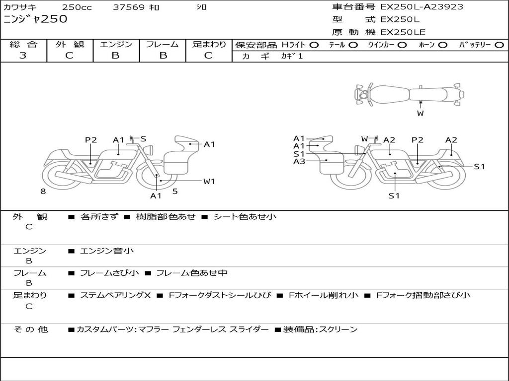 | Номер рамы / VIN | EX250L-A23923 |