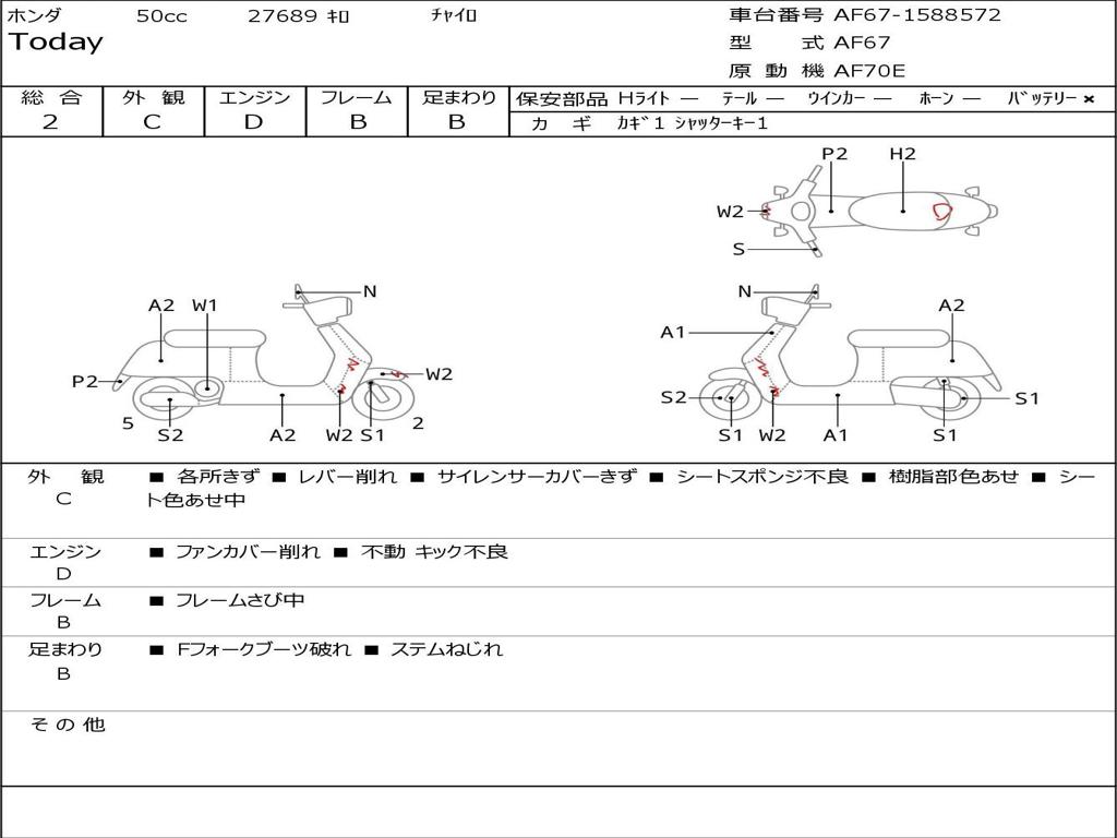 | Номер рамы / VIN | AF67-1588572 |