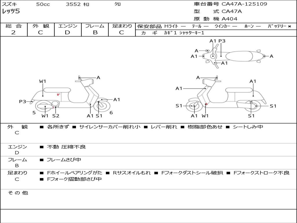 | Номер рамы / VIN | CA47A-125109 |