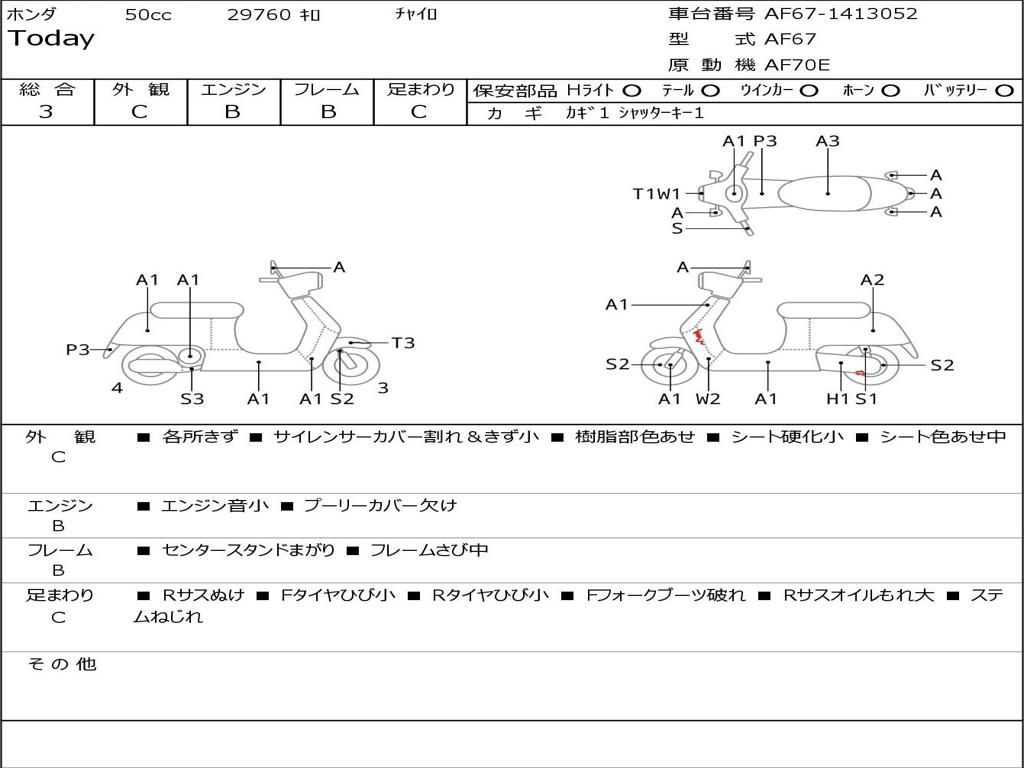 | Номер рамы / VIN | AF67-1413052 |