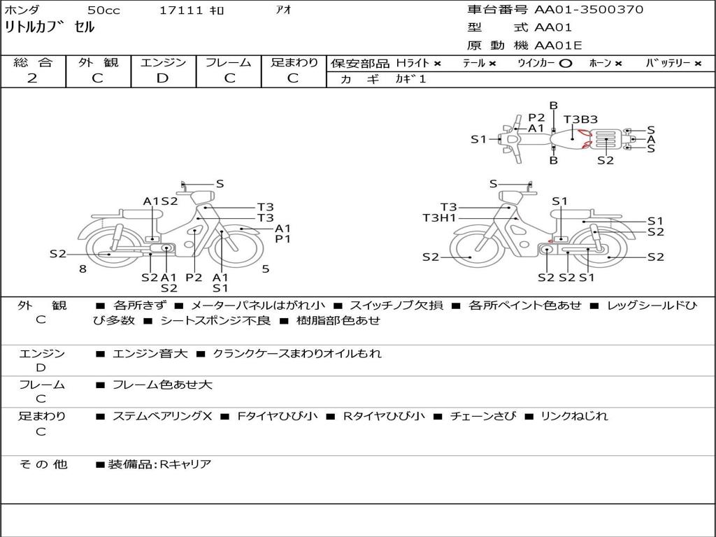 | Номер рамы / VIN | AA01-3500370 |