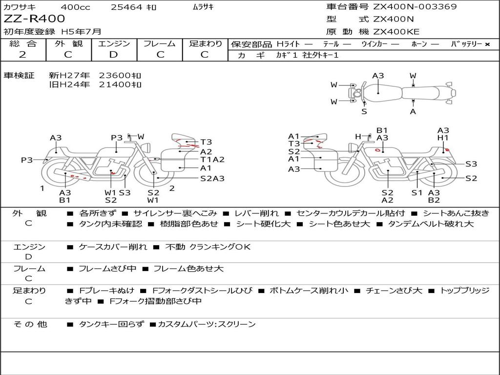 | Номер рамы / VIN | ZX400N-003369 |