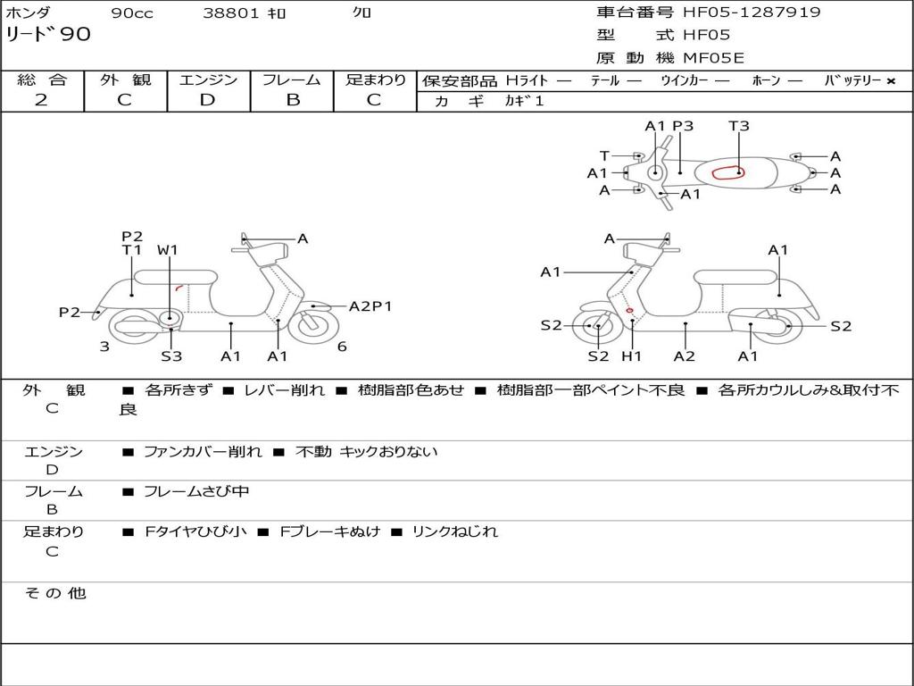| Номер рамы / VIN | HF05-1287919 |