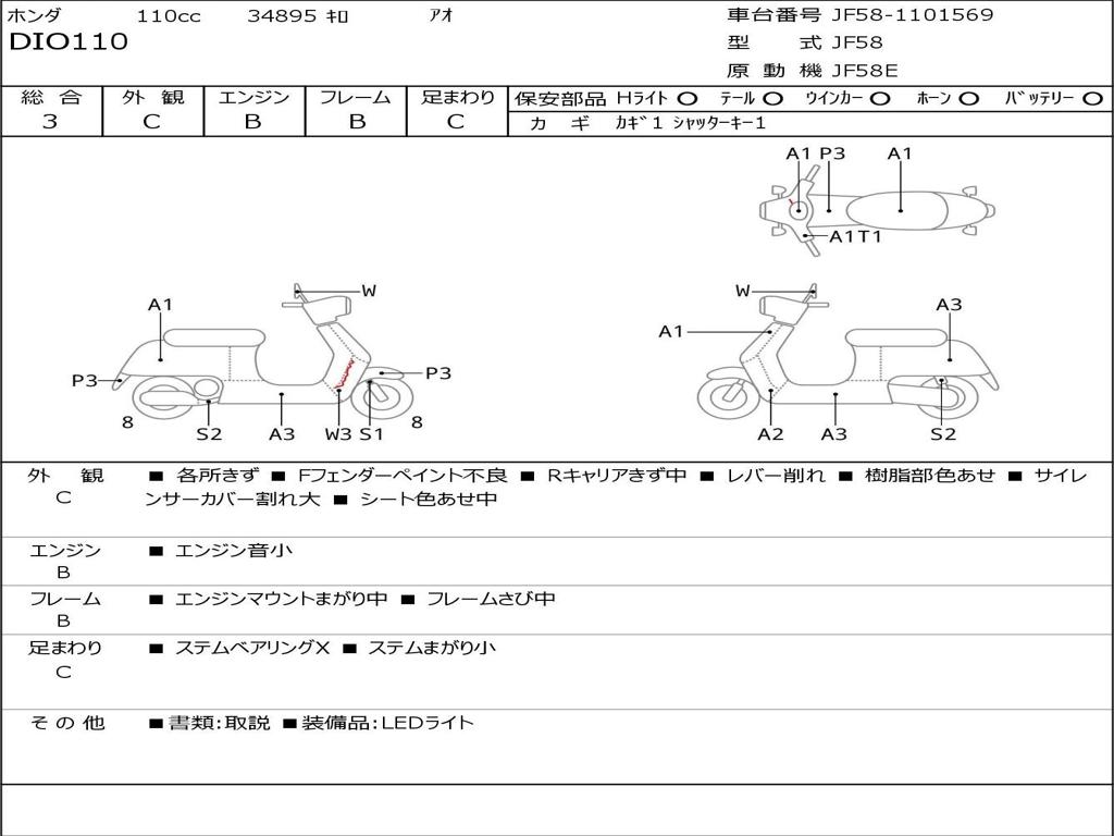 | Номер рамы / VIN | JF58-1101569 |