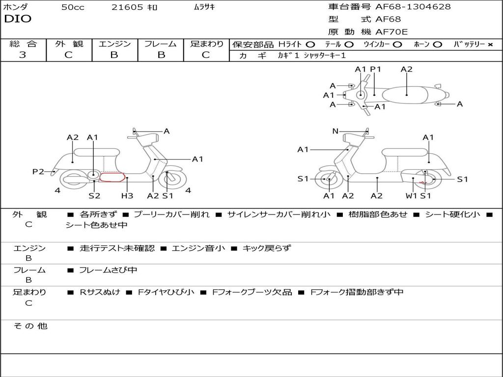 | Номер рамы / VIN | AF68-1304628 |