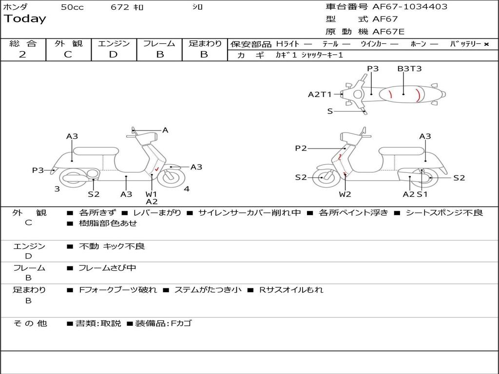 | Номер рамы / VIN | AF67-1034403 |