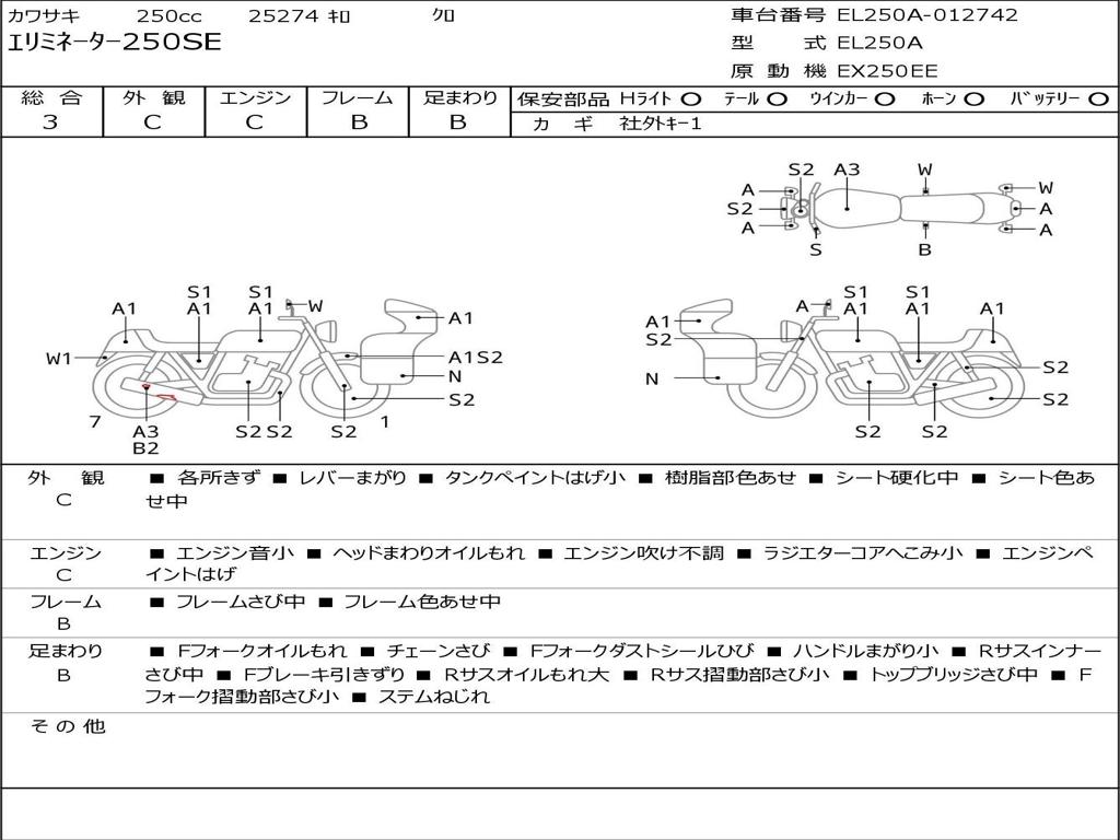 | Номер рамы / VIN | EL250A-012742 |