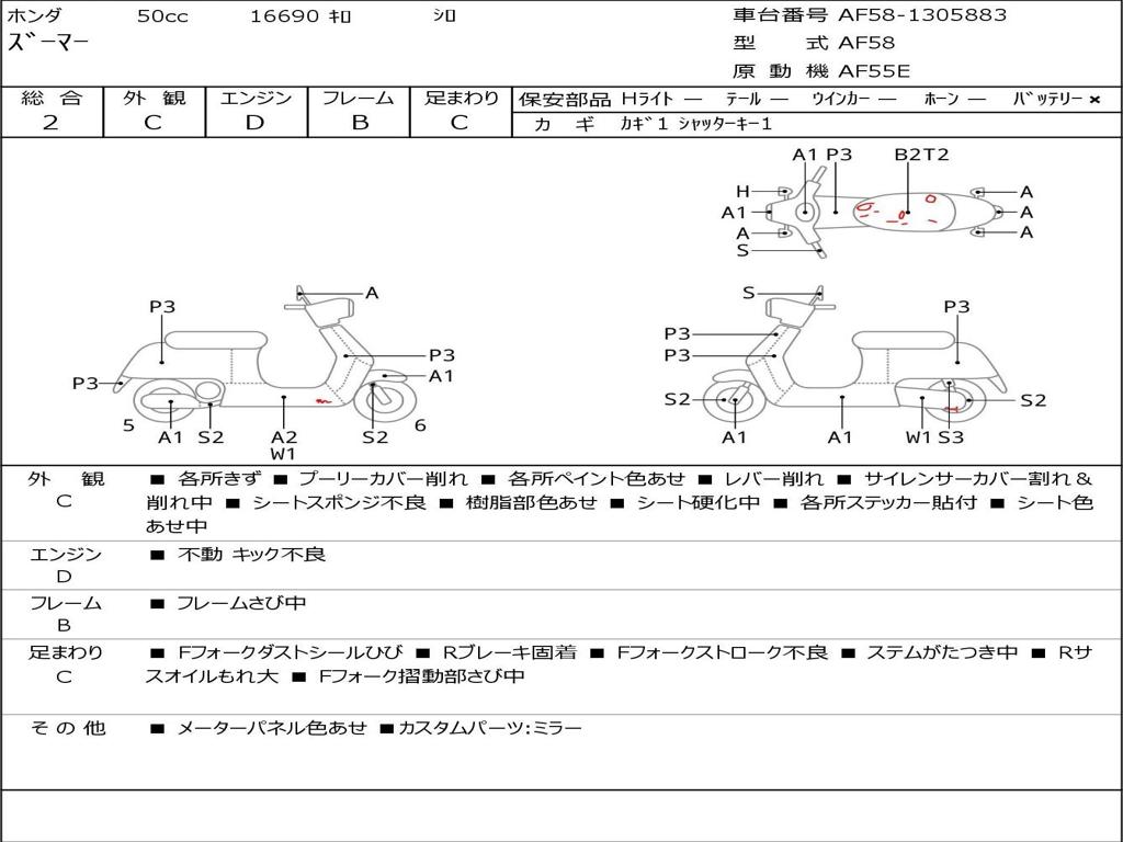 | Номер рамы / VIN | AF58-1305883 |