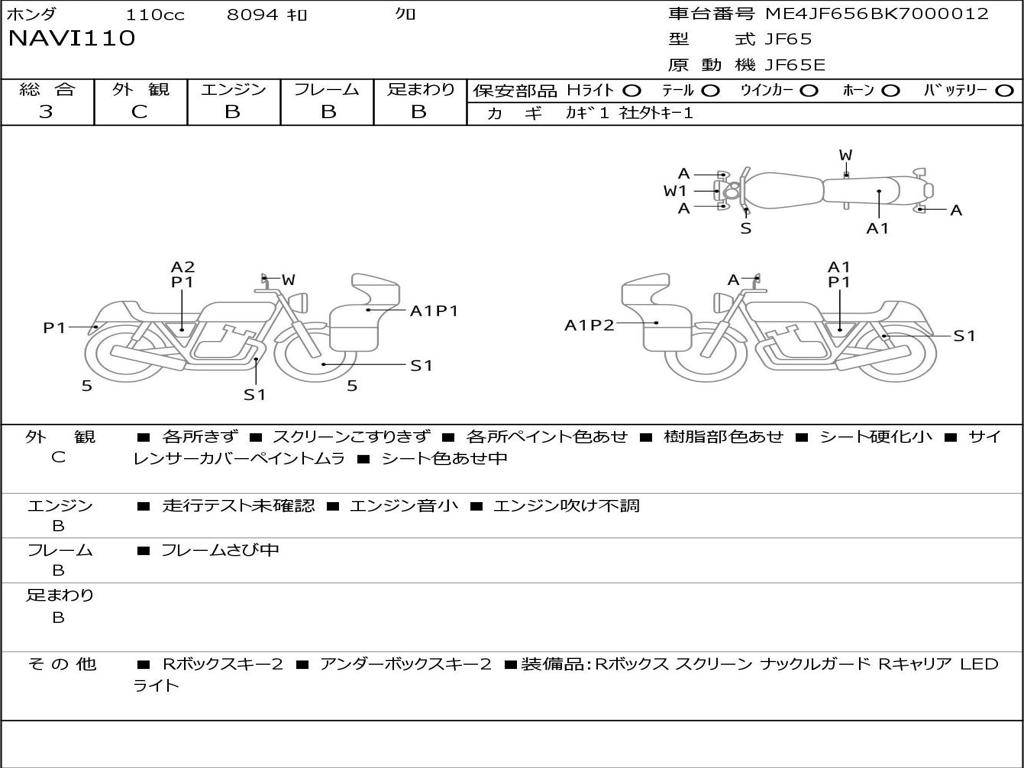 | Номер рамы / VIN | ME4JF656BK7000012 |