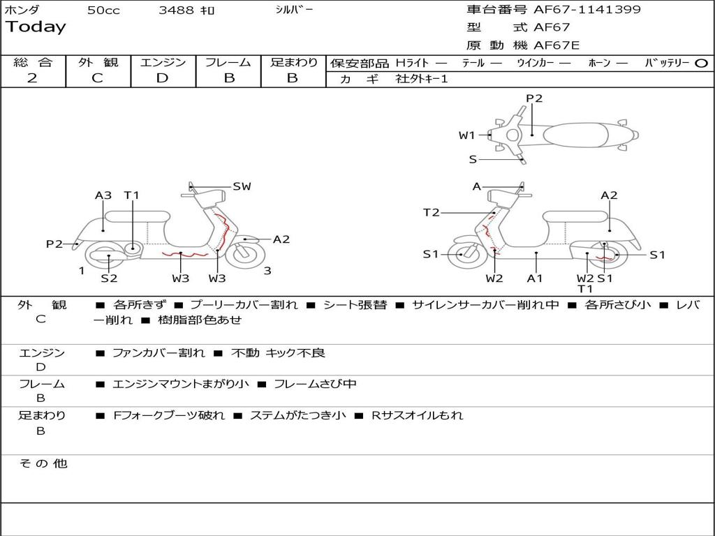 | Номер рамы / VIN | AF67-1141399 |