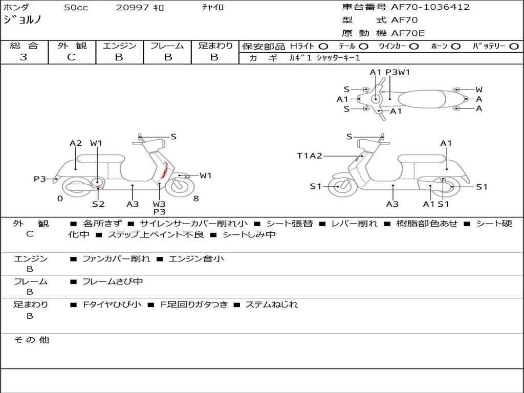 | Номер рамы / VIN | AF70-1036412 |