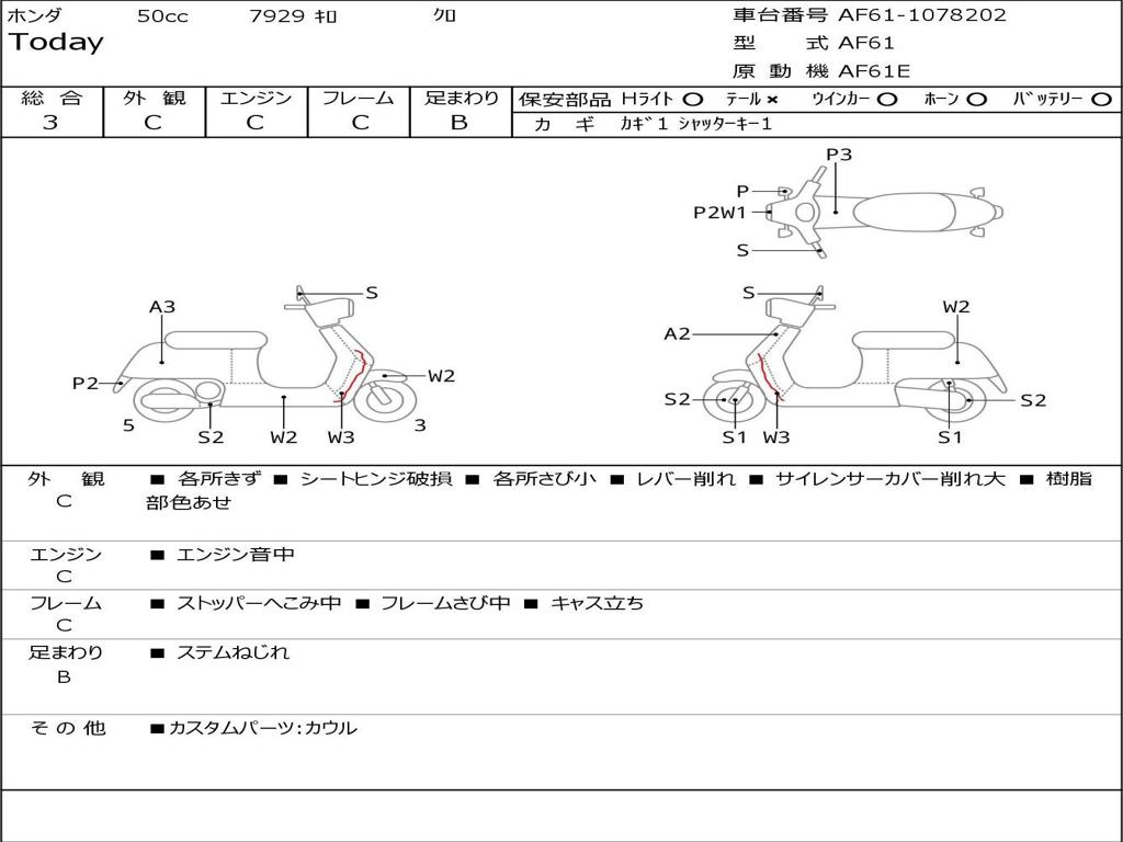 | Номер рамы / VIN | AF61-1078202 |