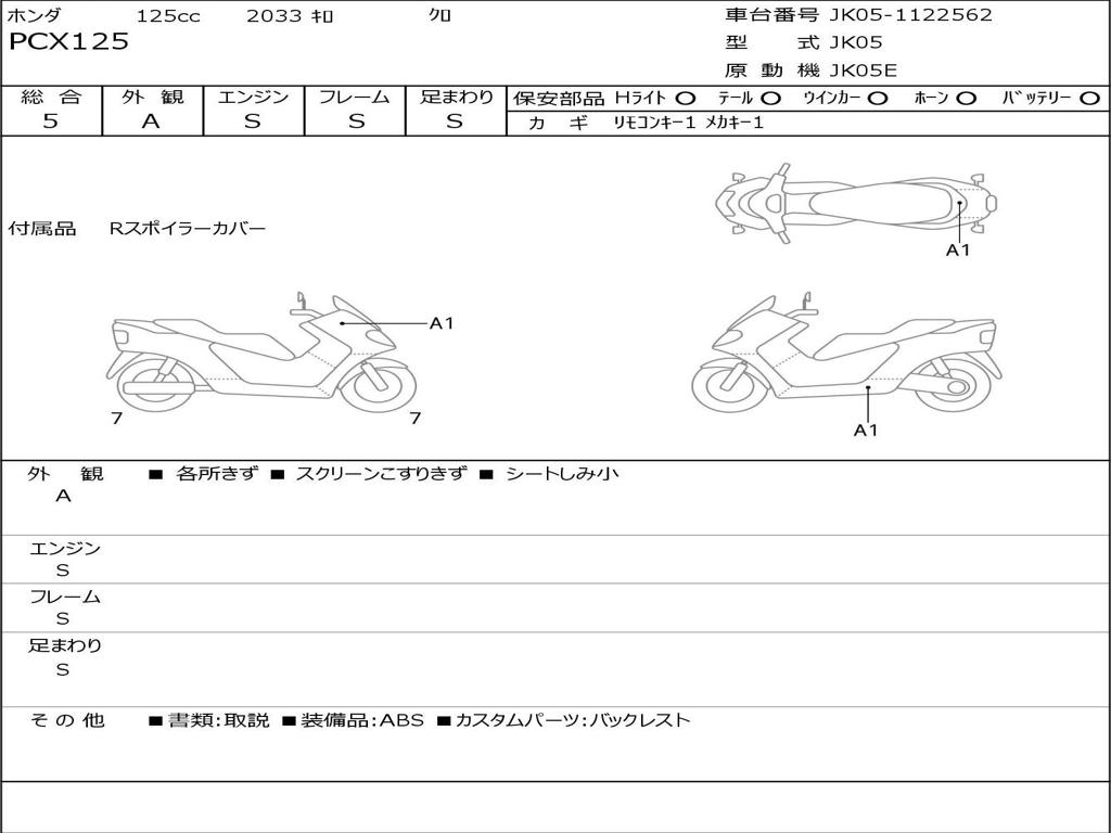 | Номер рамы / VIN | JK05-1122562 |