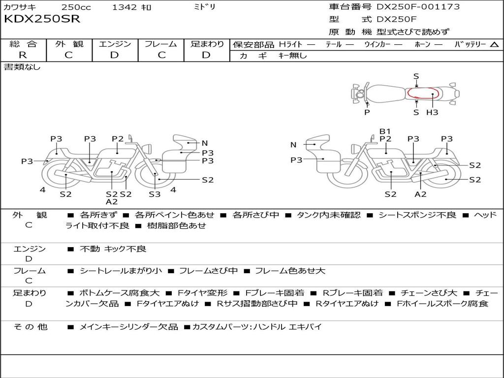 | Номер рамы / VIN | DX250F-001173 |