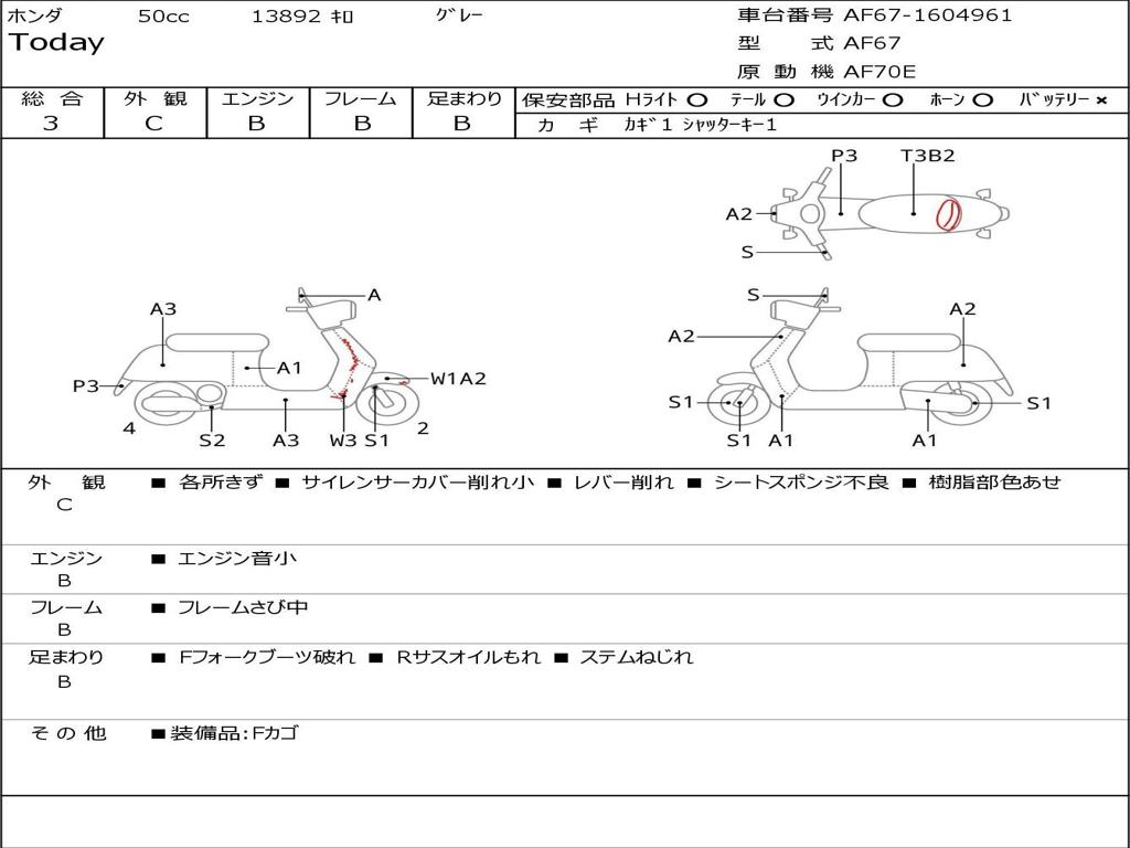 | Номер рамы / VIN | AF67-1604961 |
