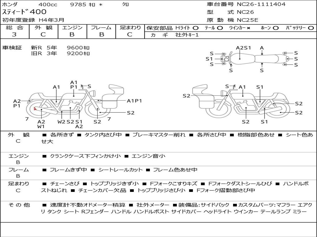 | Номер рамы / VIN | NC26-1111404 |