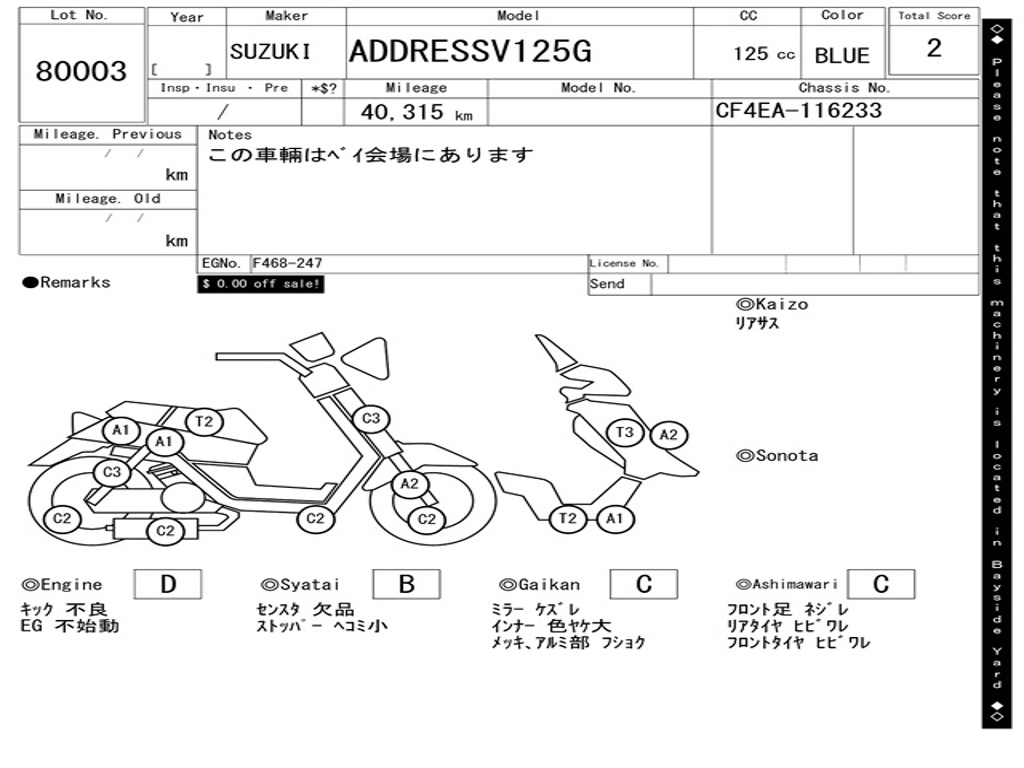 | Аукцион | ARAI BAYSIDE |