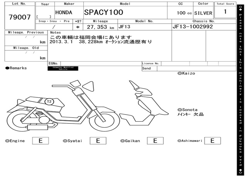 | Номер рамы / VIN | JF13-1002992 |