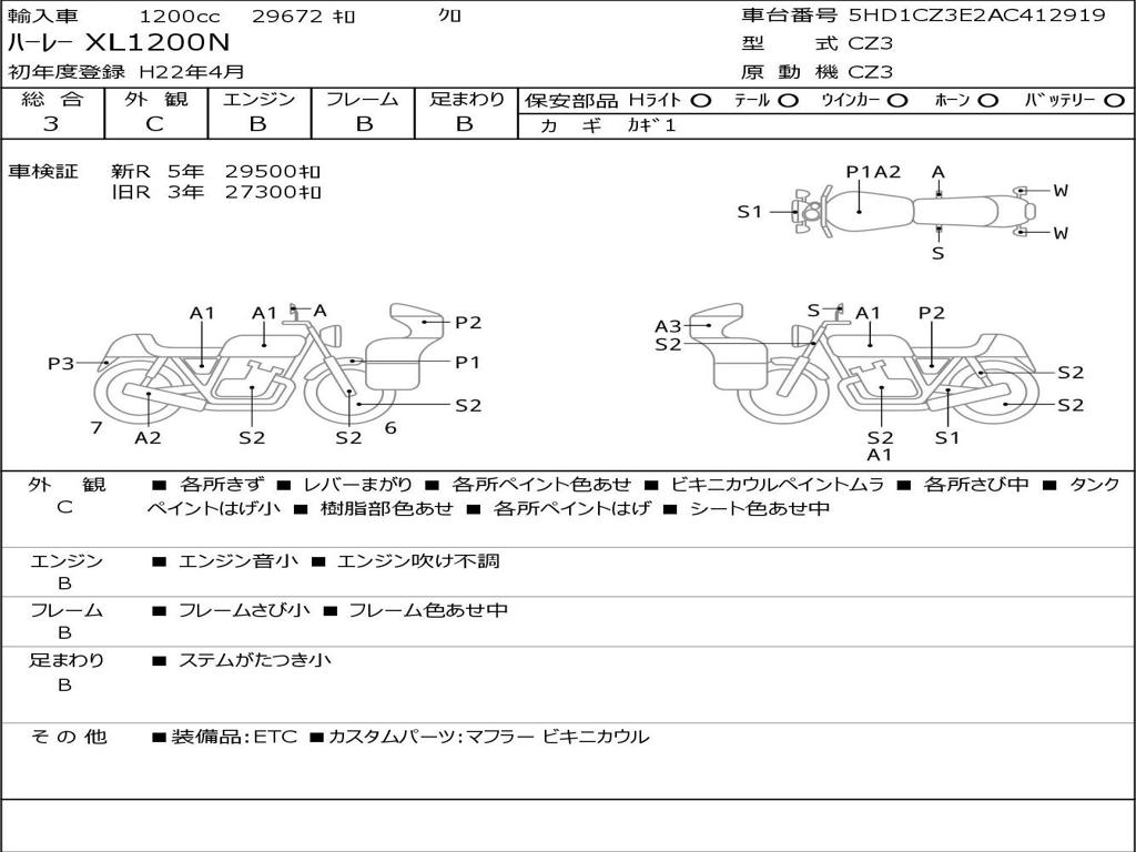 | Номер рамы / VIN | 5HD1CZ3E2AC412919 |
