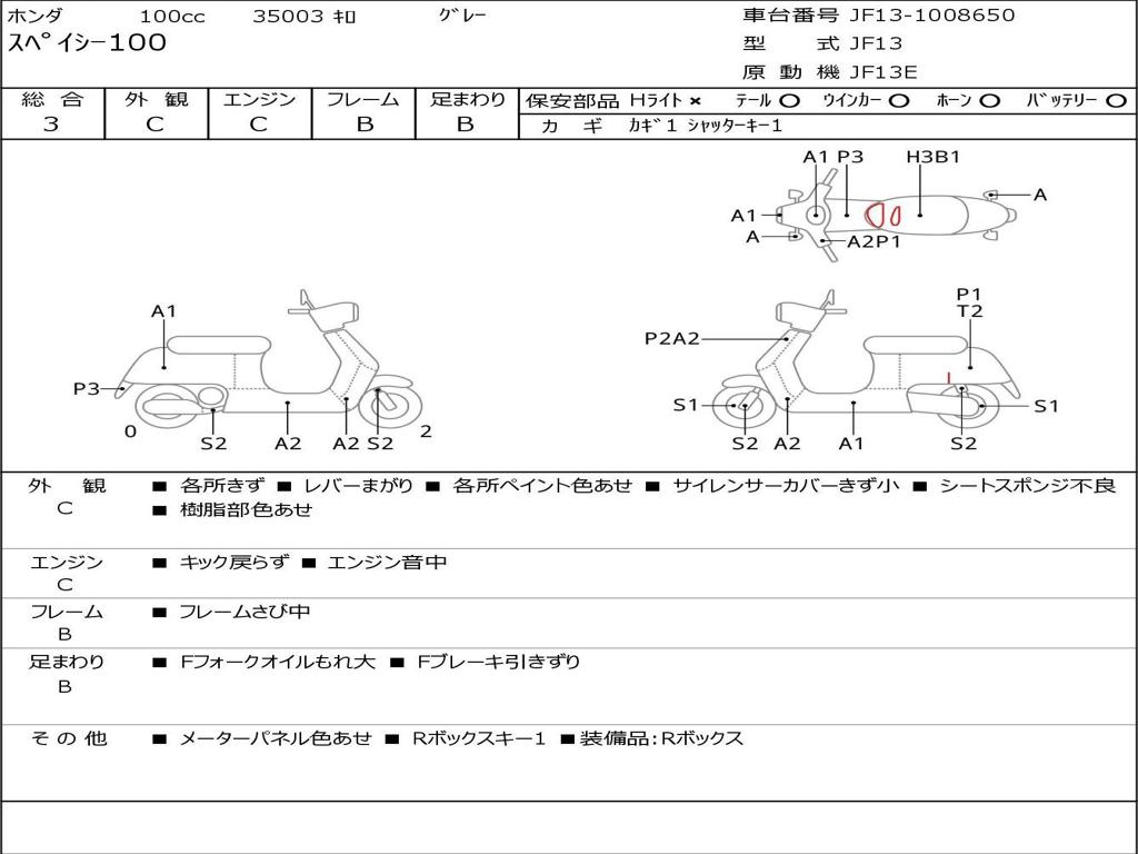 | Номер рамы / VIN | JF13-1008650 |