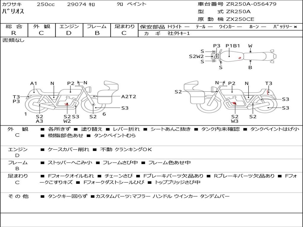 | Номер рамы / VIN | ZR250A-056479 |