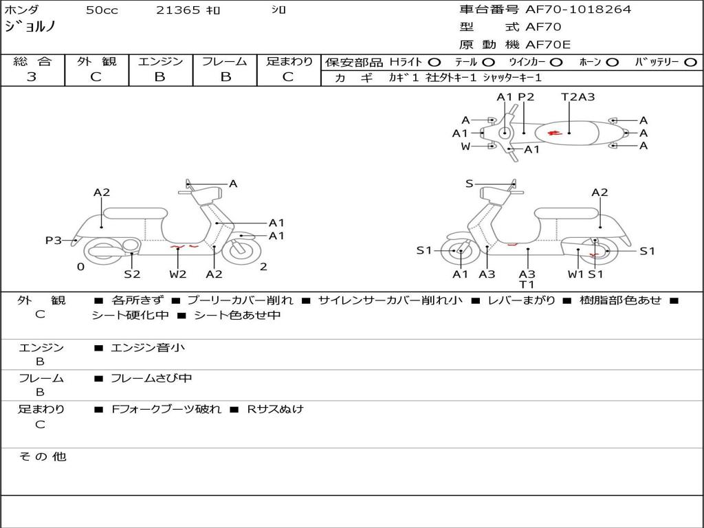 | Номер рамы / VIN | AF70-1018264 |