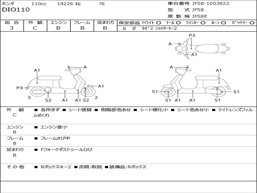 | Номер рамы / VIN | JF58-1003822 |