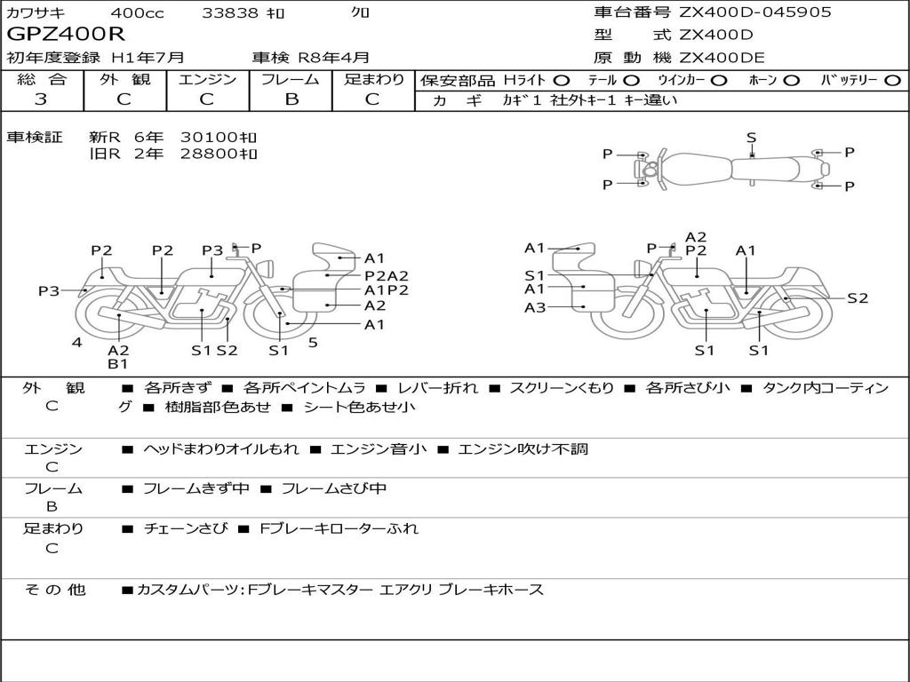 | Номер рамы / VIN | ZX400D-045905 |