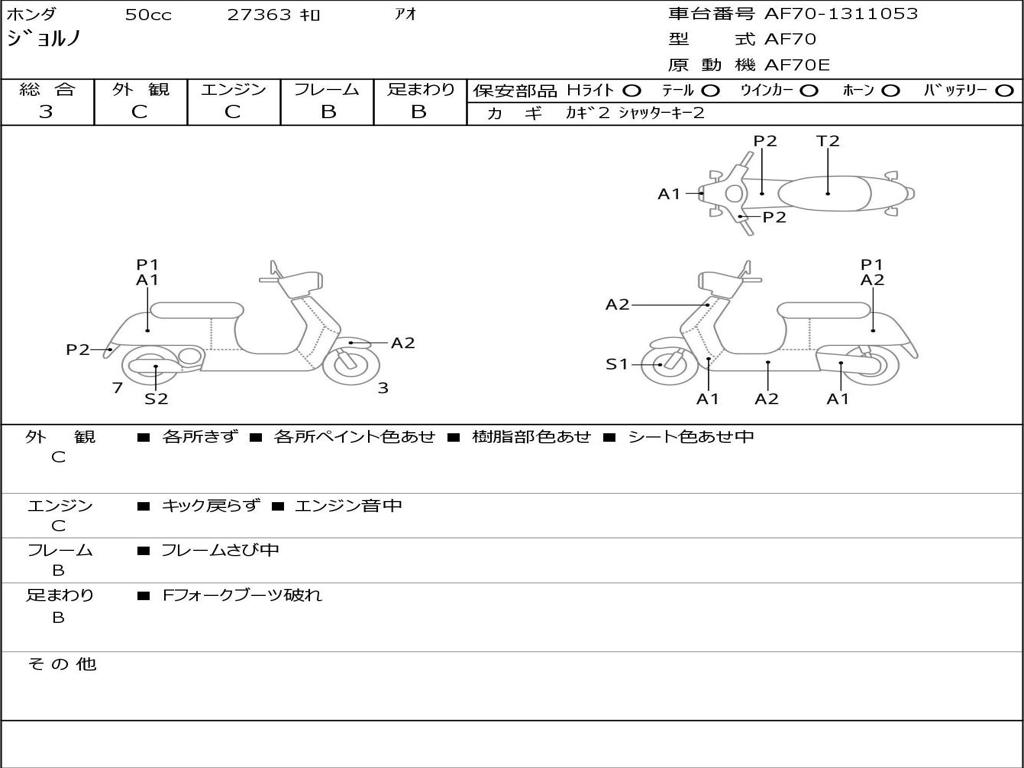 | Номер рамы / VIN | AF70-1311053 |
